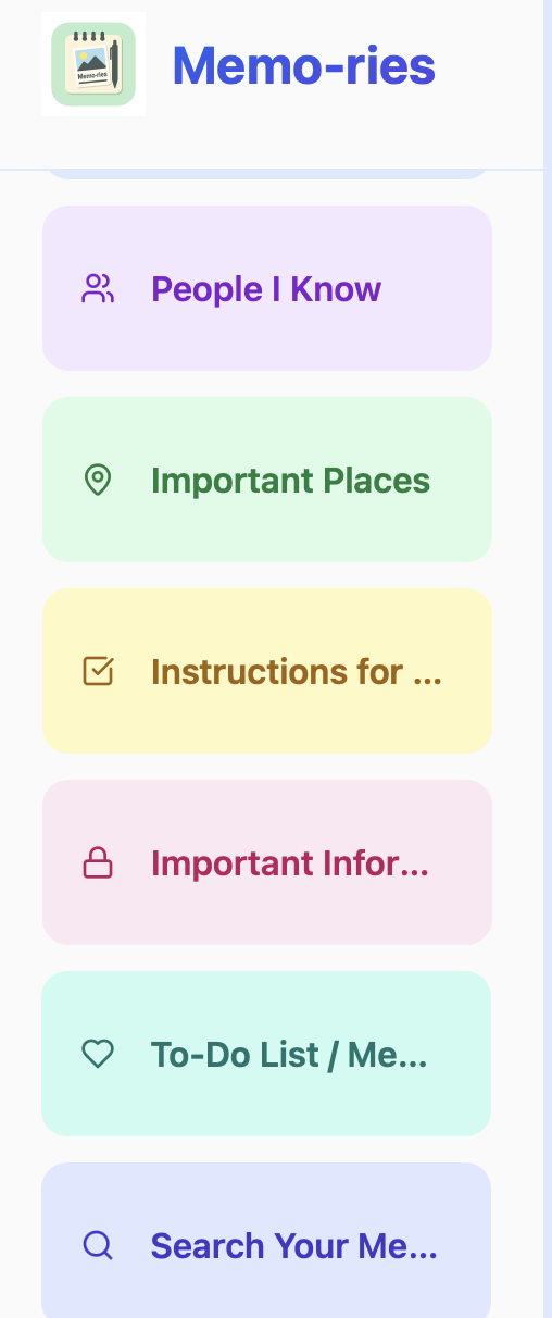 Designed for people with memory challenges, this app uses "memos" to make it simpler to capture and organize the meaningful parts of your life. Add photos of loved ones, special events, and favorite places. Keep track of important notes and passwords, daily to-dos, and reminders — all in one gentle, easy-to-use space.